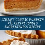 Libby’s Classic Pumpkin Pie Recipe (Only 5 Ingredients!) Recipe embodies the beauty of simplicity in baking. With minimal ingredients and straightforward steps, it offers maximum comfort and flavor. Whether you’re a pumpkin pie newbie or a seasoned dessert lover, this recipe is guaranteed to become a cherished staple in your kitchen. Give it a try—you’ll be amazed at just how effortlessly delightful pumpkin pie can be!