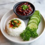 Serve the fragrant coconut rice alongside a generous dollop of spicy sambal oelek and fresh lime wedges. The sambal adds a fiery contrast while the lime’s acidity brightens every bite, making this Malaysian Coconut Rice with Spicy Sambal Recipe an unforgettable experience.