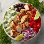 A fresh and flavorful Mediterranean Chicken Salad combining tender cooked chicken breast with vibrant veggies, tangy olives, and creamy feta, all tossed in a zesty Greek yogurt-based dressing. Perfectly balanced for a light lunch or a healthy dinner.