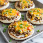 Split the English muffins in half and lay them out cut-side up on a cookie sheet. This forms the sturdy foundation for your Mexican English Muffin Pizza Recipe, ready to be topped with the cheesy sausage mixture.