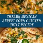 Try serving this chili in mini soup bowls for a party appetizer version or over a bed of tortilla chips as a hearty, dippable meal. You can also turn it into a chili-stuffed baked potato, topping with cheese and sour cream. No matter how you present it, the Mexican Street Corn White Chicken Chili Recipe adapts beautifully to different occasions and cravings.