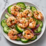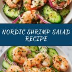 A refreshing and light Nordic Shrimp Salad combining tender shrimp with crisp cucumbers, red onion, and mixed greens, all tossed in a tangy dill and lemon mayonnaise dressing. Perfect for a quick, healthy lunch or a light dinner.