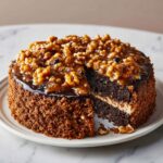 10. Prepare and Apply Topping: In a small bowl, mix together the packed brown sugar, chopped walnuts, and melted butter. Spread this topping evenly over the cooled cake, then let it set for 10-15 minutes before slicing and serving to allow flavors to meld.