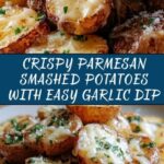 These Parmesan Smashed Potatoes are a crispy, flavorful side dish perfect for any meal. Boiled baby potatoes are gently smashed, seasoned with garlic, olive oil, and Parmesan cheese, then baked until golden and crispy. Served with a creamy garlic dip made from sour cream, garlic, and lemon juice, this recipe is easy to prepare and sure to be a crowd-pleaser.