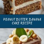 A rich and moist Peanut Butter Banana Cake that combines the creamy flavors of peanut butter with the natural sweetness of ripe bananas. Topped with a luscious peanut butter frosting and garnished with sliced bananas and crushed peanuts, this cake is perfect for dessert or any special occasion.