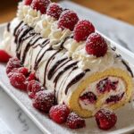 A decadent Raspberry White Chocolate Cake Roll featuring a light and fluffy sponge cake filled with sweet raspberry jam, fresh raspberries, and a smooth white chocolate ganache. This elegant dessert combines tart and creamy flavors, perfect for special occasions or anytime you crave a delightful treat.