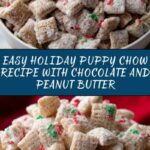 For gift-giving or party treats, package the Christmas Puppy Chow in clear cellophane bags tied with red and green ribbon. You can also layer it in decorative jars with holiday tags to make charming gifts that friends and family will adore. Serve it in festive bowls or even sprinkle some in small cups for easy grab-and-go snacks.