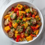 This hearty and flavorful Sausage and Sweet Potatoes with Honey Garlic Sauce recipe combines roasted sweet potatoes with savory Italian sausage and colorful bell peppers, all coated in a sweet and tangy honey garlic sauce. Perfect for a comforting weeknight dinner, this dish is easy to prepare and packed with balanced flavors and textures.