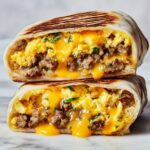 These Sausage Scramble Breakfast Burritos feature a savory blend of ground beef, breakfast sausage, scrambled eggs, and melty cheddar cheese wrapped in warm flour tortillas. Perfect for a hearty and satisfying breakfast, they can be made ahead for busy mornings and customized with your favorite salsa or hot sauce.