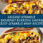 Take your Sausage Scramble Breakfast Burritos Savory Beef Scramble Wrap Recipe to the next level by slicing them into bite-sized pinwheels for a fun brunch appetizer. You can also build a burrito bowl by serving the scramble over rice or greens and topping it with your favorite toppings like guacamole, pico de gallo, or sour cream for a deconstructed twist.
