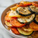 Transfer the sliced vegetables into a large mixing bowl. Drizzle the olive oil over them, then sprinkle the dried thyme, parsley, garlic powder, oregano, sea salt, and freshly ground black pepper. Toss everything gently but thoroughly to ensure every piece is coated in those gorgeous seasonings.