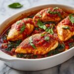 Savory Baked Chicken Arrabbiata is a comforting and flavorful weeknight meal featuring tender chicken legs seared and baked in a spicy tomato sauce with fresh spinach, served over your choice of pasta. This Italian-inspired dish combines the heat of chili flakes with the freshness of oregano and the sweetness of cherry tomatoes, making it a perfect hearty dinner that’s easy to prepare.
