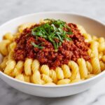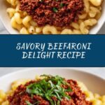 Elevate your Savory Beefaroni Delight Recipe with fresh garnishes like chopped parsley or a sprinkle of grated Parmesan cheese. These add a burst of color and a layer of fresh flavor that complements the rich sauce perfectly.