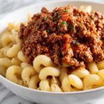 Start by bringing a large pot of salted water to a boil. Add the elbow macaroni and cook according to the package instructions, usually around 7 to 8 minutes, until al dente. Once done, drain the pasta and set it aside, so it’s ready to meet the hearty beef sauce.