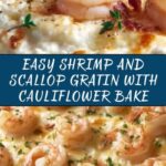 This Shrimp and Scallop Gratin with Cauliflower is a creamy, savory dish combining tender seafood and cauliflower florets baked in a rich Parmesan cream sauce, topped with a crispy golden breadcrumb crust. Perfect as a comforting yet elegant meal, it features the subtle flavors of garlic, lemon zest, and white wine, garnished with fresh parsley for a vibrant finish.