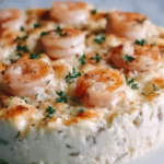 This Shrimp and Scallop Gratin with Cauliflower is a creamy, savory dish combining tender seafood and cauliflower florets baked in a rich Parmesan cream sauce, topped with a crispy golden breadcrumb crust. Perfect as a comforting yet elegant meal, it features the subtle flavors of garlic, lemon zest, and white wine, garnished with fresh parsley for a vibrant finish.