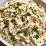 This Slow Cooker Chicken and Gravy recipe delivers tender, flavorful chicken breasts cooked low and slow in a creamy, savory gravy. Perfect for an easy, comforting meal, this dish combines simple pantry ingredients including chicken gravy mix, cream of chicken soup, and a hint of garlic and paprika for depth. The juicy chicken is shredded and smothered in a smooth sour cream-enriched gravy, ideal for serving over mashed potatoes, rice, or noodles.