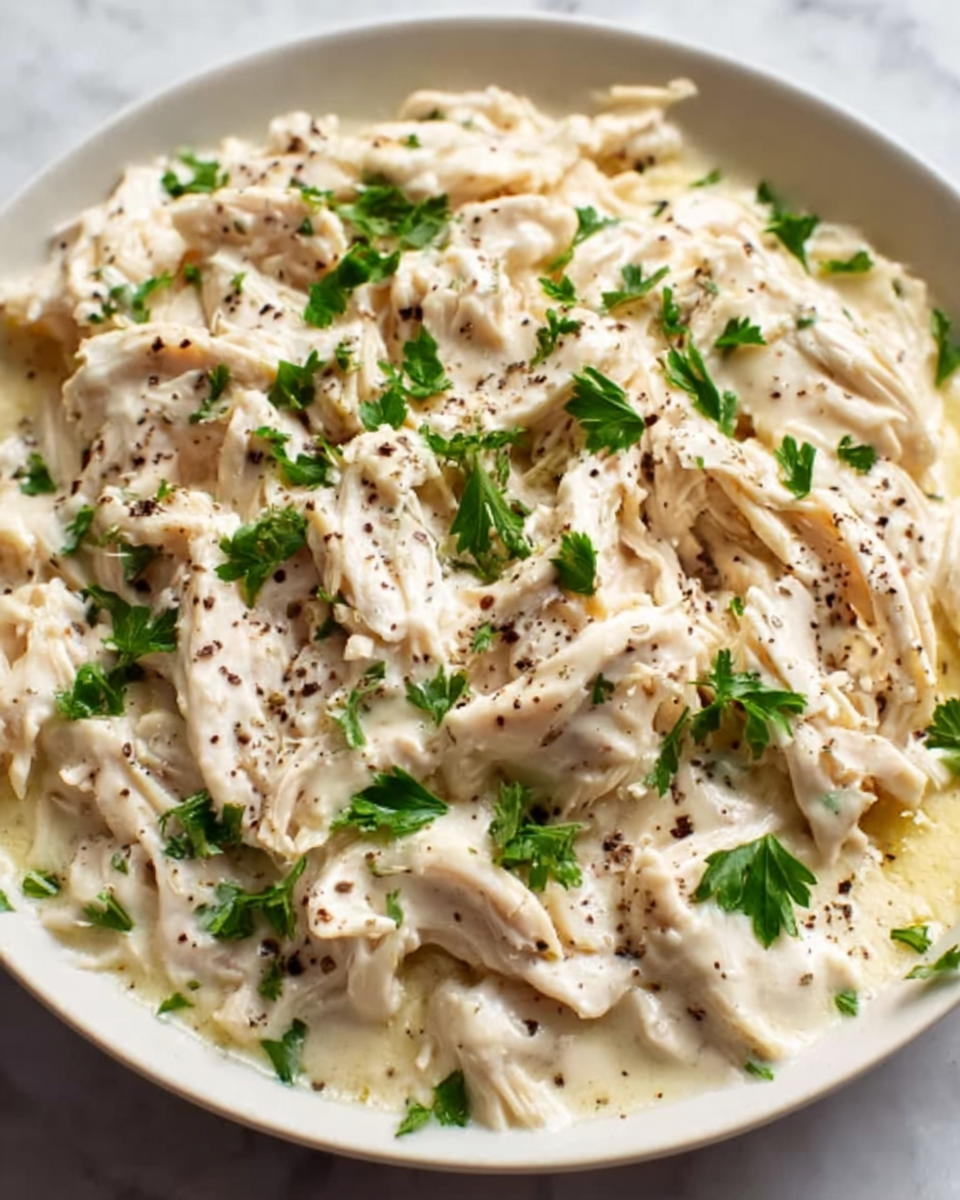 Once the chicken is cooked through, carefully remove it from the slow cooker using tongs or a slotted spoon. Shred or slice the chicken as you prefer — shredding lets the gravy seep into every tender strand for maximum flavor enjoyment.