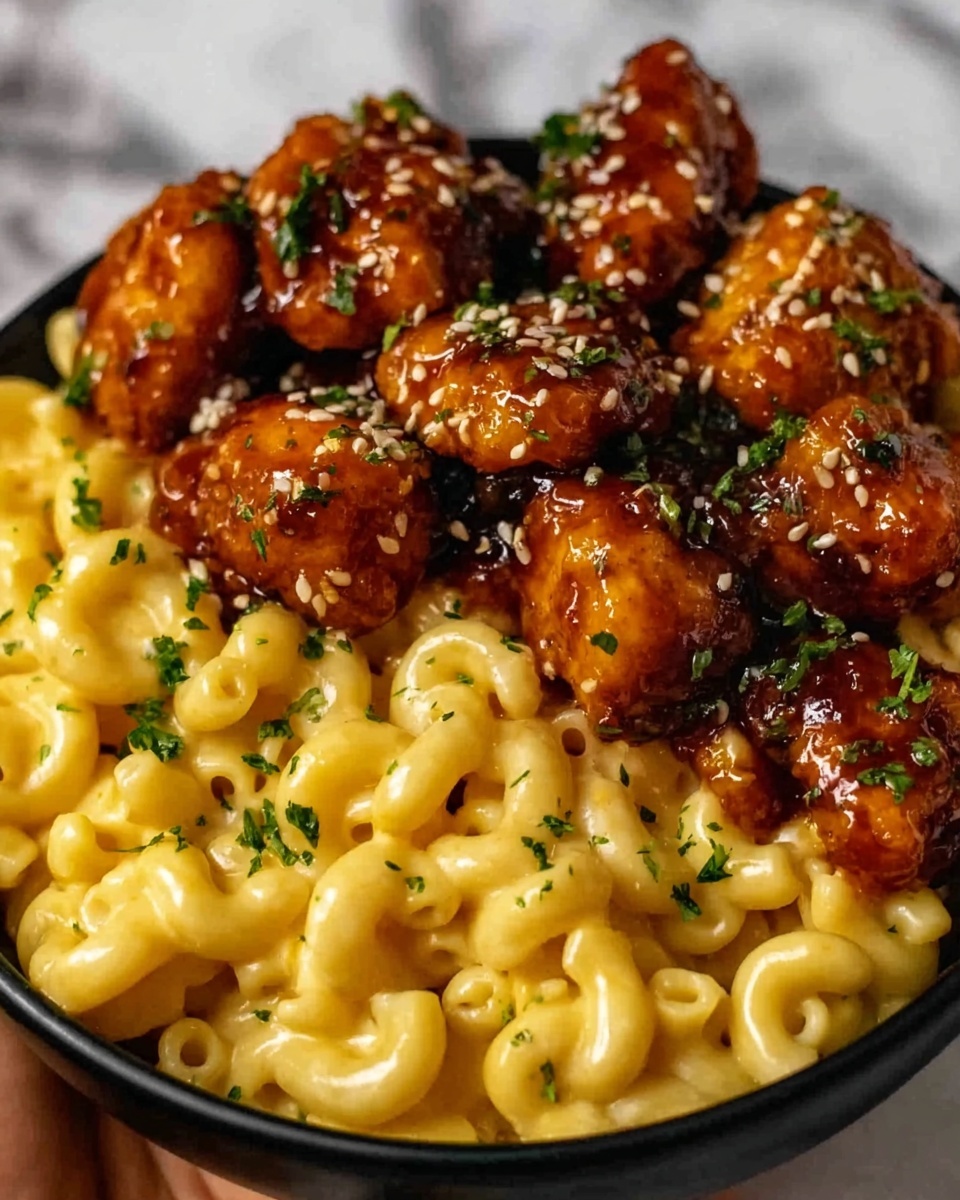 Fresh garnishes can add a pop of color and flavor to this hearty dish. Sprinkle chopped green onions or fresh parsley over the mac and cheese for brightness. A light drizzle of extra honey or a few red pepper flakes can add eye-catching appeal and a flavor boost to the chicken.