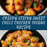 Delight in these Sticky Sweet Chili Chicken Thighs, featuring perfectly seared, crispy skin and a luscious, tangy sauce made from honey, sweet chili sauce, soy, and aromatic garlic and ginger. This oven-baked recipe ensures juicy, flavorful chicken finished with sesame oil, green onions, and sesame seeds for a vibrant Asian-inspired meal.