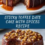 A rich and moist Sticky Toffee Date Cake infused with warm spices like cinnamon, ginger, and cloves, topped generously with a homemade creamy toffee sauce. This classic British dessert combines the natural sweetness of dates with a luscious sauce, perfect for any occasion.