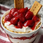 This Strawberry Cheesecake Dip is a creamy, no-bake dessert perfect for parties or casual gatherings. It combines smooth cream cheese with sweet strawberry preserves and fresh strawberries, topped with graham cracker crumbs for a delightful crunch. Serve it chilled with graham crackers, vanilla wafers, or pretzels for an easy and delicious treat that captures the classic cheesecake flavor in a dip form.