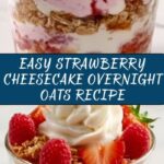 A creamy, delicious Strawberry Cheesecake Overnight Oats recipe that combines rolled oats, Greek yogurt, fresh strawberries, and a touch of cream cheese for a wholesome and flavorful breakfast you can prep the night before.