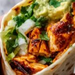 Now comes the best part—assembling! Lay a few slices of grilled chicken on each warm tortilla. Top generously with chopped cilantro, finely diced onion, creamy avocado slices, and your chosen salsa. Each topping brings a different sensation: fresh, crunchy, creamy, and spicy—all working together to deliver that true taqueria experience.