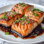 This Teriyaki Salmon recipe features tender, flaky salmon fillets marinated in a flavorful homemade teriyaki sauce made from soy sauce, hoisin, brown sugar, garlic, and ginger. The salmon is baked to perfection and topped with a thickened teriyaki glaze, sesame seeds, and fresh green onions, delivering a perfect balance of savory and sweet flavors in just 40 minutes.
