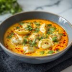This Thai Coconut Curry Dumpling Soup is a warm, flavorful bowl featuring a rich and creamy coconut curry broth loaded with vegetables and tender dumplings. Combining fragrant red Thai curry paste, coconut milk, and fresh aromatics, this soup is perfect for a cozy meal that is both comforting and vibrant. Garnished with fresh cilantro and green onions, it’s easy to make on the stovetop and suitable for vegetarians when using vegetable dumplings.
