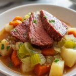 A classic Traditional Irish Corned Beef and Cabbage recipe perfect for St. Patrick’s Day, featuring tender brisket simmered with aromatic spices and hearty vegetables for a flavorful and comforting meal.