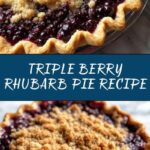 A delightful Triple Berry Rhubarb Pie featuring a blend of fresh or frozen berries and tart rhubarb, topped with a buttery streusel. This pie is perfect for a sweet and tangy dessert, baked to golden perfection with a flaky crust and a rich, bubbling filling.