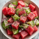 A refreshing and vibrant Watermelon Shiso Salad, combining juicy watermelon cubes with fragrant shiso leaves, crisp cucumber, and a zesty lime dressing. This light and flavorful salad is perfect for a quick summer appetizer or a healthy side dish.