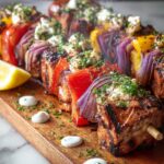 - Rest and serve: Remove the skewers from the grill and let them rest for a few minutes to redistribute juices. Serve hot with warm pita bread, a generous dollop of tzatziki, and your choice of fresh vegetables like sliced red onion, tomatoes, cucumber, and a sprinkle of fresh parsley.