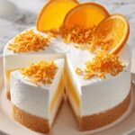 - Garnish and serve: Decorate the top with orange slices or extra zest. Before serving, run a warm knife around the edge of the springform pan to loosen the cake and carefully remove the sides. Slice and enjoy immediately.
